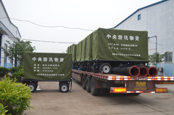 山東省防辦采購我公司生產的車載型自吸式移動泵站